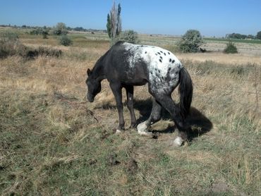 The mare, estimated to be in her late 20s, possibly early 30s, was very skinny and had horrible looking old break in her knee. The bone appears to have fused and she had been getting around ok on it.