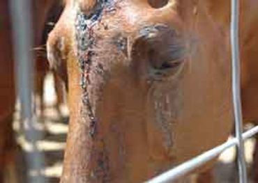 There were two studs, two mares and a filly confined together in a pen no larger than about 24'X24'. The stud horses had been allowed to run with the mares which can be a disastrous situation.