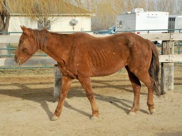 The horses had been experiencing long-term neglect and malnutrition. When we arrived there was no hay in sight, the horses were on a dry-lot trying to eat their own feces out of extreme hunger.